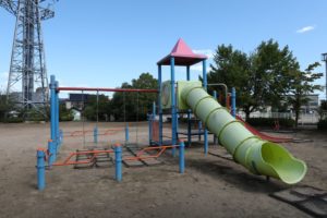 鉄塔が目印!広いグラウンドと遊具で遊ぼう さんの川公園は、JR砺波駅から徒歩5分の位置にある公園です。広いグラウンドと、いくつかの遊具があります。 さんの川公園